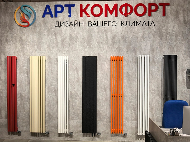 Вертикальные радиаторы добавляют оригинальность помещению за счёт большого разнообразия форм и расцветок.